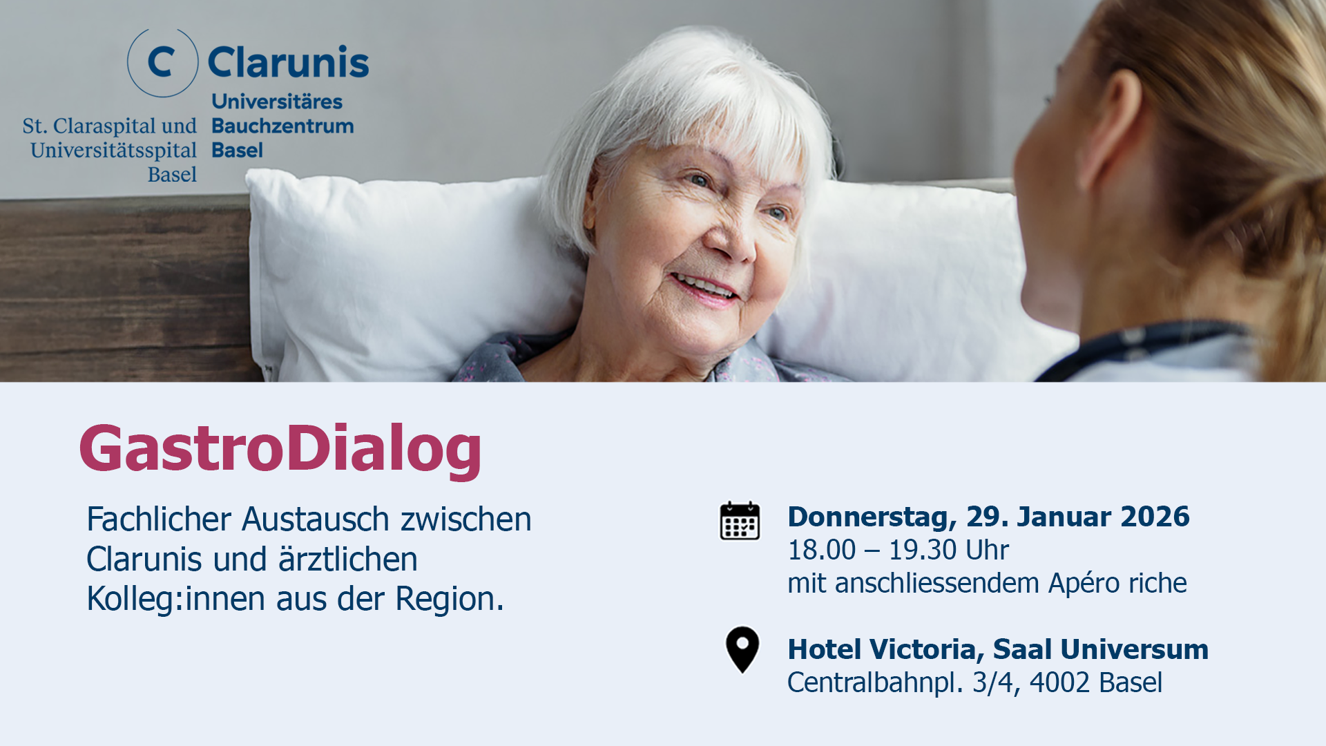 Mit der neuen Fortbildungsreihe bietet Clarunis für Viszeralchirurg:innen und Gastroenterolog:innen ein Format mit Fachvorträgen und persönlichem Austausch mit anschliessendem Apéro riche.
